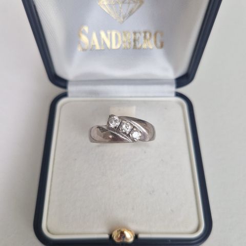 Kuin uusi valkokultainen Sandbergin Tähdenlento-sormus timantit ja ametistit. Koko 16.5.