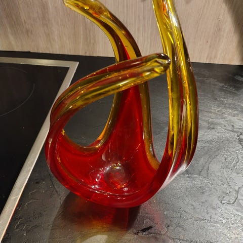 Vaaleanvihreä taidelasi.Murano italian tehdäs. Siisti, virheetön. Lasi Vene 'astia gondola.