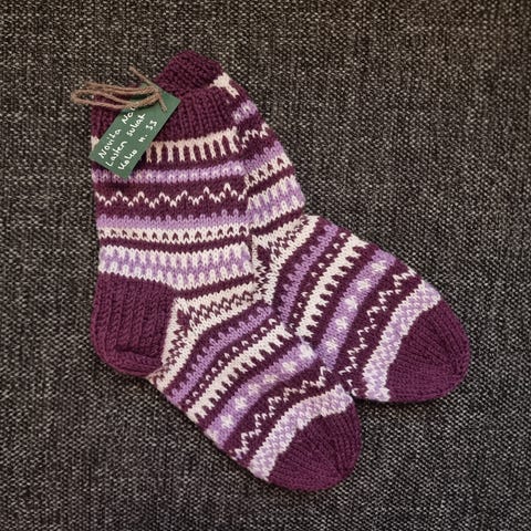 Saatavilla myös sinikuvioiset villasukat, koko 26.
