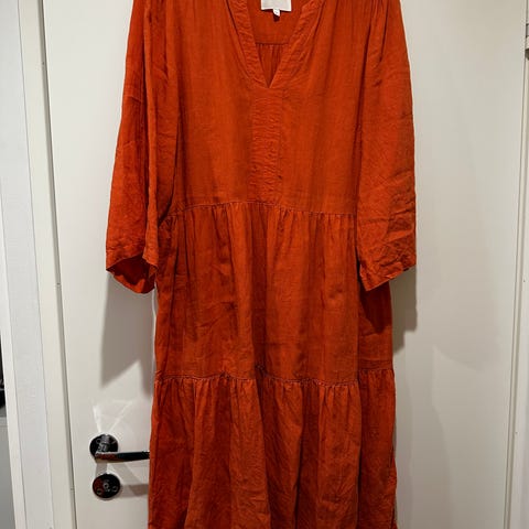 Naisten pellavamekko, koko 42. Materiaali: 45% viskoosi, 40% puuvilla, 15% pellava.