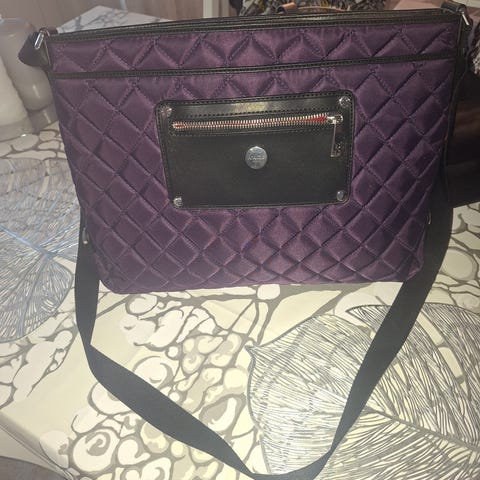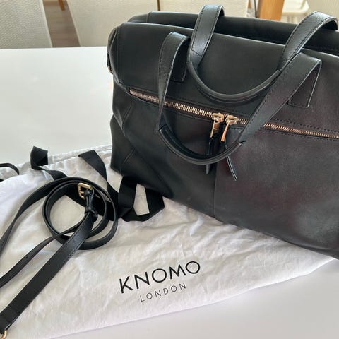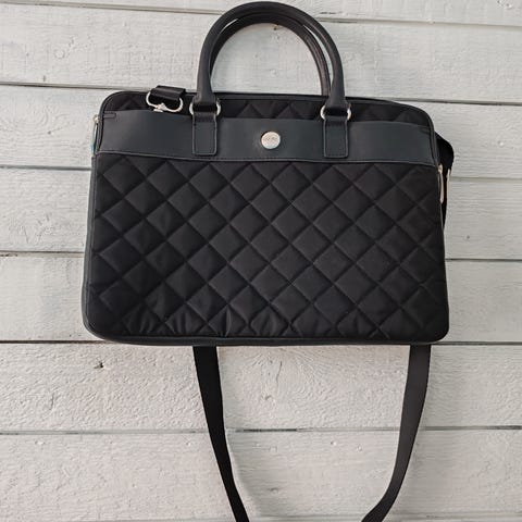 Tyylikäs laukku, joka sopii päivittäiseen käyttöön niin käsilaukkuna kuin tietokonelaukkuna. Varsinainen tilaihme, johon voi pakata jopa 15" kannettavan kaikkine tarvikkeineen. Avainnipulle ulkotaskussa ripustuslenkki, organisointia varten useita taskuja ja lokeroita. Laukussa kadonneen laukun palauttamista varten kehitetty uniikki Knomo ID, jonka voi rekisteröidä valmistajan sivuilla itselleen. Laukun OVH uutena 200 Laukun mitat: leveys noin 41cm, korkeus noin 28cm. Syvyys pohjasta mitattuna noin 15cm.