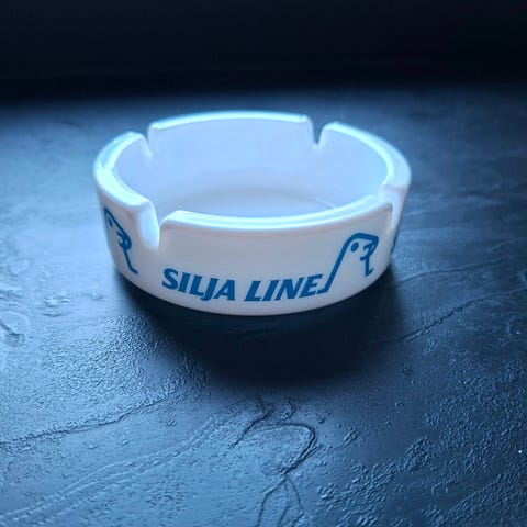 2 kpl Silja Line tuhkakuppeja, halkaisija 10,5 cm, korkeus 3,5 cm