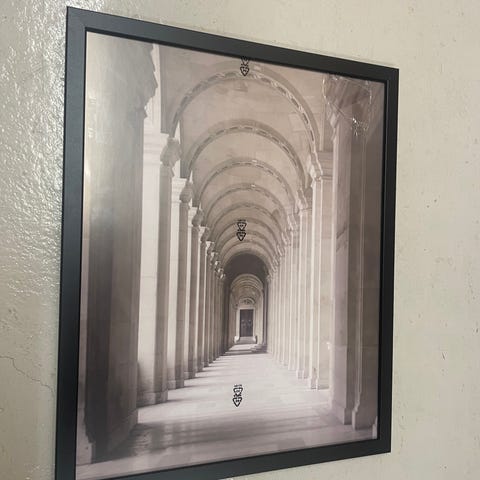 Ikea Ribba-kehys, koko 41x51cm. Voi pitää kummassakin suunnassa. Taustalla taivuteltu ripustusrautalanka jäljellä.