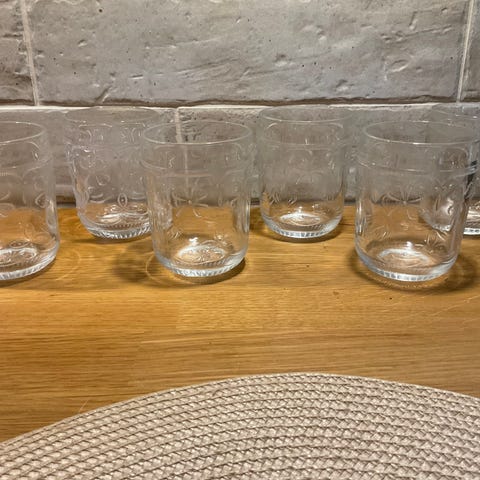 7 kpl. Nuutajärvenlasi numero 1125, liköörilasit. Vähän erivärisiä.