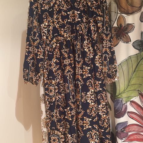 Hihaton Zaran mekko, jonka kankaassa hieman elastaania. Helmassa paksumpi musta röyhelö pitsimäistä kangasta. Vyötäröllä tampit ja isot napit. Koko L.