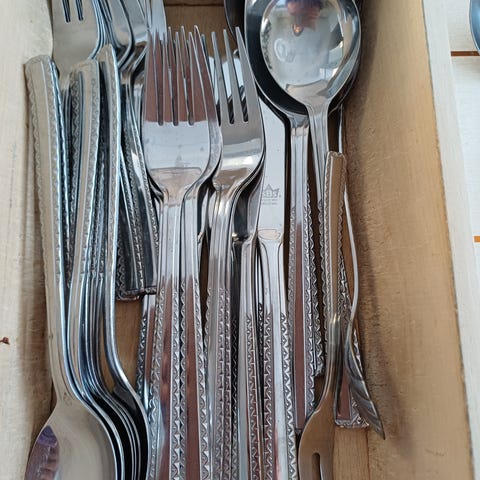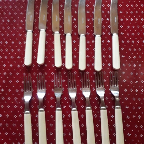 Hieno sarja ruokailuvälineitä esim. häälahjaksi, tupaantuliaislahjaksi ym. 70,-/ tarjous soittele.