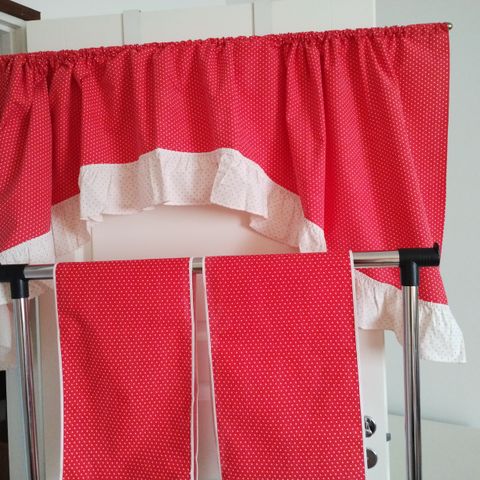 Kaunis pitsikappaverho. Ihanasti tuo valoa huoneeseen.