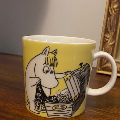 Myydään tarraton keltainen Niiskuneiti muumimuki. Ollut vähäisessä käytössä.