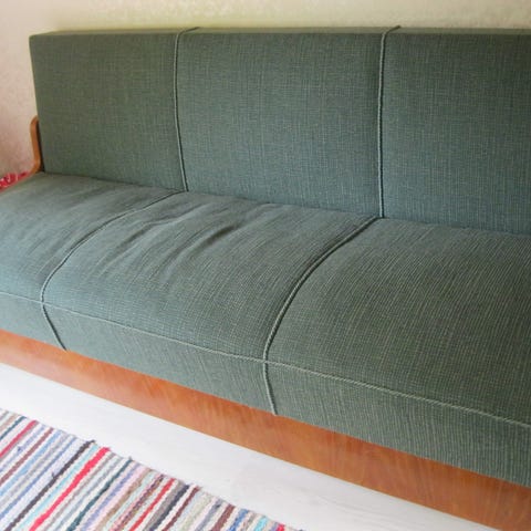 Ilmari Lappalaisen Askolle 40- luvulla suunnittelema Laila- sohva. Vihreä plyysi. Ollut ahkerassa käytössä, vaatii mahdollisesti pientä fiksausta mutta lähtee uuteen kotiin suoraan käytöstä. Klassikko!
