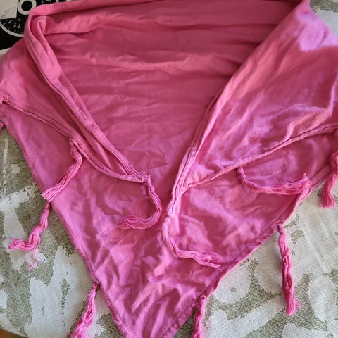 Kaunis pinkki kolmiohuivi. Ei reikiä tai tahroja.
