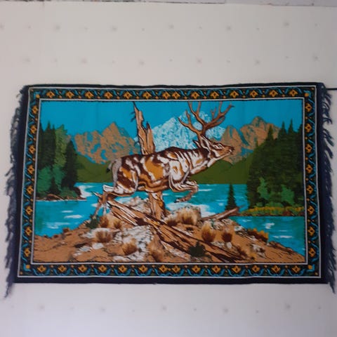 Uusi käyttämätön seinävaate Eräniitty. Korkeus 138 cm ja leveys 150 cm. Näyttävä erämetsä peura aiheinen seinävaate.