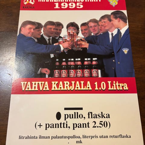 Suomi Jääkiekko MM Maailmanmestari 1995 Karjala pulloja olutpullo sarja 16kpl
