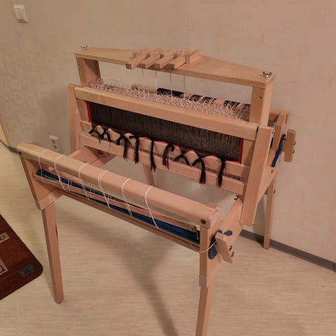 Pikkumattojen ja poppanoiden kutomiseen. Tehdasvalmisteinen, lähes käyttämätön.