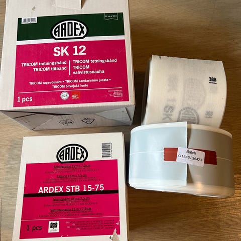 Myydään kaksi täyttä pakettia ja yksi vajaa kulmanauhaa, RK Corner Tape Pro. Täysissä paketeissa 30 m/paketti ja vajaassa ehkä 8 metriä jäljellä.