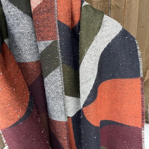 Vaalean vihreä hapsullinen huivi tai kaulaliina.