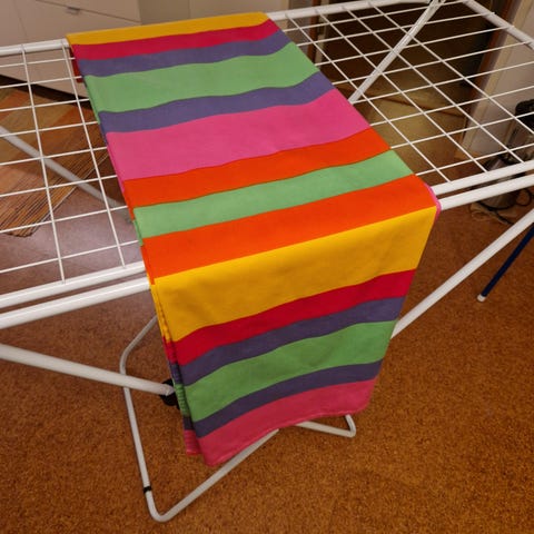 Marimekon kankaasta tehty pöytäliina. Koko 139 x 142 cm. Vintage. 1970-80-lukua.