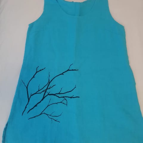Tukuisaa, ei läpikuultavaa 100% pellavaa. Sivusaumoissa taskut. Hyvä toppi kesäksi.
