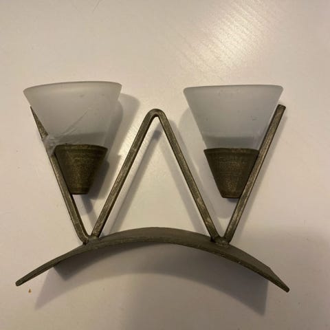 Komea romanttinen takorautainen kynttiläteline, lasit voi vaihtaa jos itsellä on kirkkaat pienet lasikupit. Kaunis vaikka lahjaksikin.