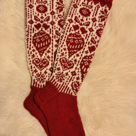 Pitkävartiset villasukat, koko 38. Lankat Novita 7 veljestä raita ja mandariini.