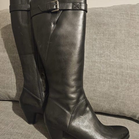 Mustat nahkaiset Ecco matalat saapikkaat. Vähänlaisesti käytetty. Mukavat jalassa, kantapehmuste. Korko n. 5cm ja varren korkeus n. 20cm.