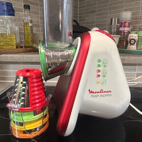 Myydään tarpeettomana sähköinen vihannesraastin, joka sisältää kierreleikkurin.