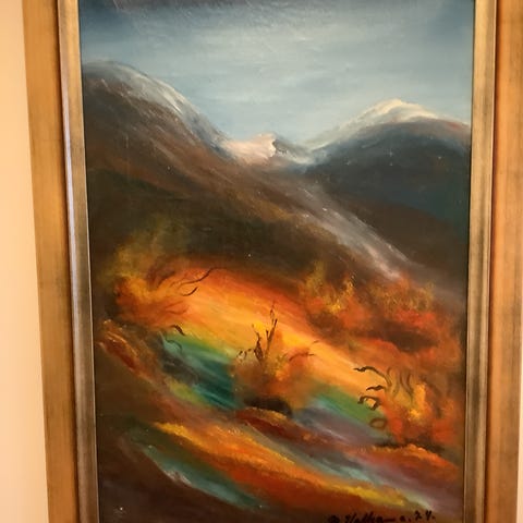 Vanha Taulu, Maalannut P. Viljanen. koko 60x50cm , kehyksessä lohkeamia jotka kuvauttu.