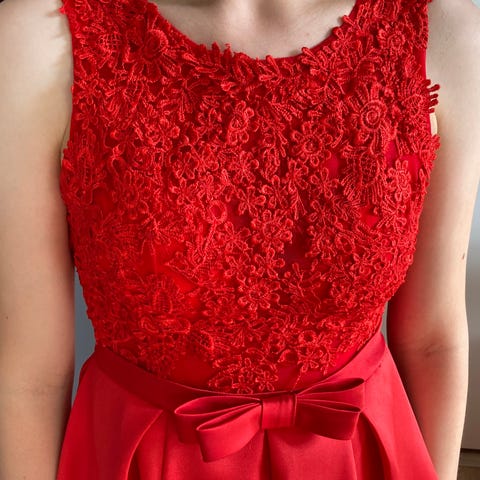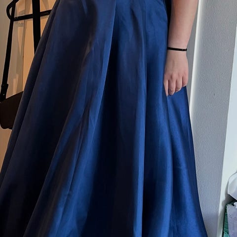 Myydään käyttämätön eli täysin puhdas ja muokkaamaton vaaleansininen vanhojentanssimekko pitsiyläosalla.