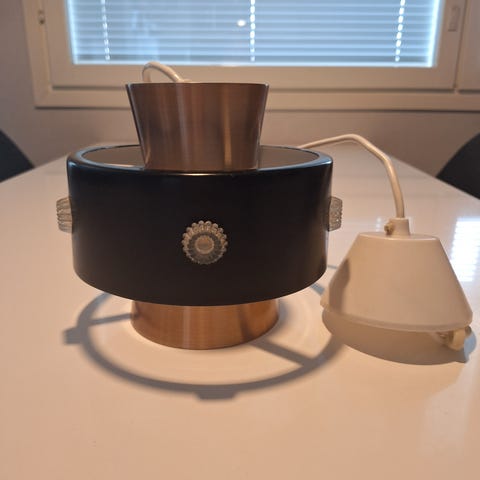 Kyyrölä Oy valaisin. Valmistettu 80-luvun alussa, 70-80 lukujen taitteessa. Pistoke tähän on laitettu jälkikäteen ja saa myös irti halutessaan.