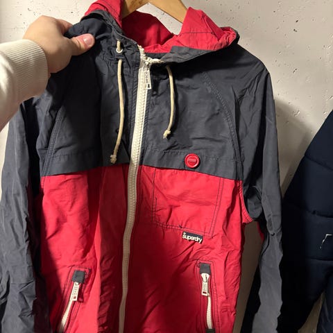 Myydään miesten hyväkuntoinen, harmaa SuperDry Sport takki / ulkoilutakki / collagetakki / vetoketju collage.