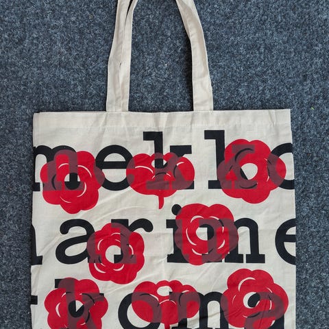 Uudet, käyttämättömät ihanat punaiset Marimekko kangaskassit/logokassit, näitä myynnissä 2kpl.