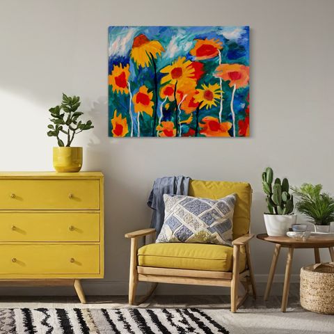 Jokainen siveltimenveto heijastaa rauhaa: iltapäivää puutarhassa, kukkia kevyessä tuulessa, luonnon tarjoamaa hiljaista lohtua. Maalaus tuo tuon tunteen kotiisi—pehmeyttä, valoa ja hiljaista iloa.