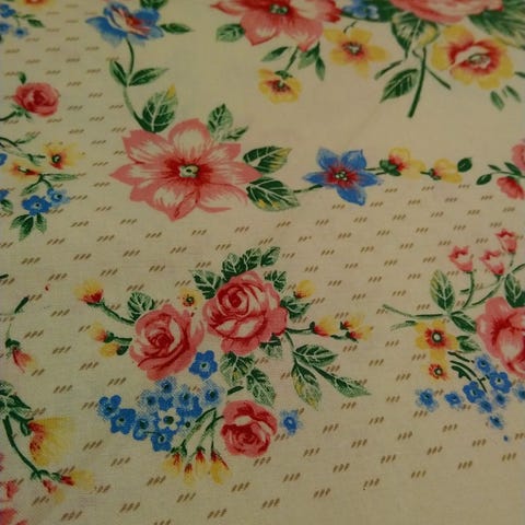 Kangastilkku. Kukallinen kangastilkku. Uskoisin että on 100% puuvillaa. Kaksi mittaa.. Pituus 232cm x leveys 68,5cm ja pituus 145cm x leveys 28cm. Haku tai postitus xxs lähetyksenä.