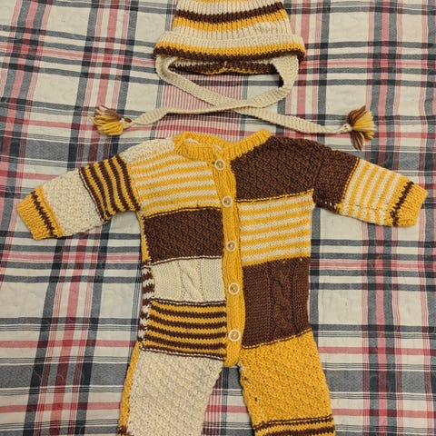 Lapsille 0- 6 kuukautta. Käsin neulottu haalari. 75 % villa. Tummavihreä ja pinkki