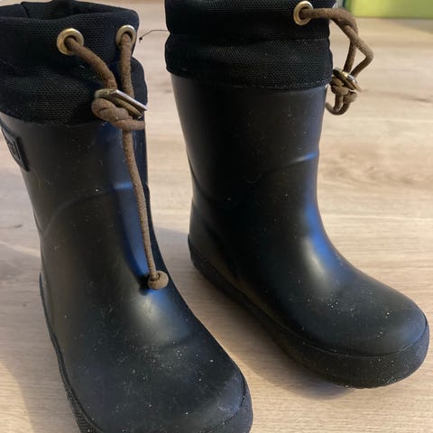 Lasten Nokian huopavuorelliset kumisaappaat, koko 26. Pohjat kuluneet mutta pitävät veden vielä loitolla.