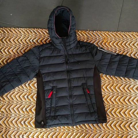 Käytetty mutta siisti takki. Irroitettava huppu.