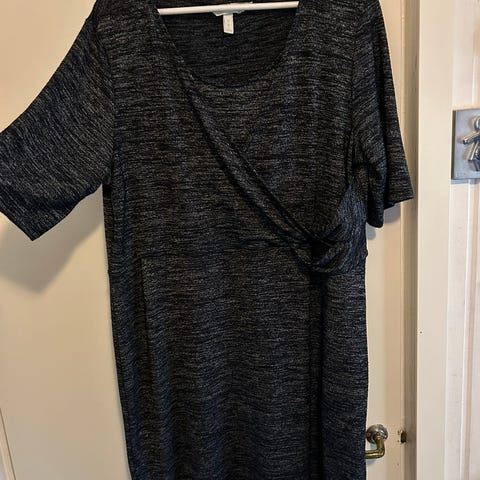 Myydään musta, polvipituinen äitiysmekko. Tässä onnistuu myös imetys kietaisumallisen yläosan vuoksi.