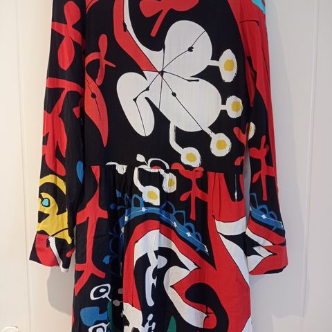 Myynnissä ruskea, a-linjainen Brysselistä ostettu Desigualin trikoomekko pitsiä muistuttavalla kuvioinnilla. Ollut käytössä S/M-kokoisella. Todella mukava päällä.