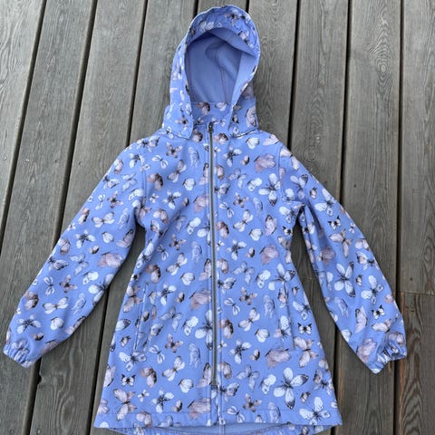 Tavallista softshelltakkia lämpimämpi, koska sisäpuolella karvavuori. Edessä alhaalla erikseen lisätty Lindexin tarraheijastin.
