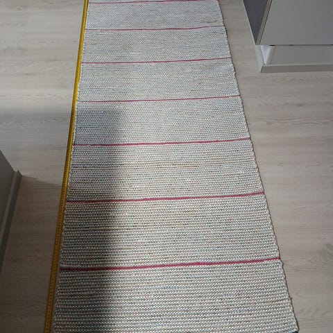 Useita yksittäisiä kuvan mukaisia räsymattoja. Lujasti kudottuja. Useita värejä. Mattoja löytyy pituudeltaa 170 - 295 cm. Metrihinta 20 euroa. Tervetuloa katsomaan!