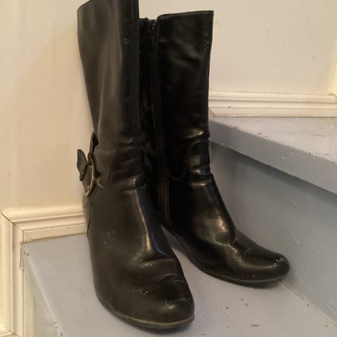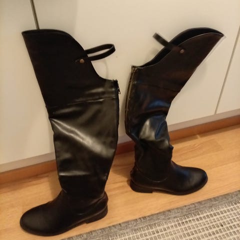 Mustat talvikengät. Koko 37. Sivussa vetoketju. Ehjät,käytetyt kengät.