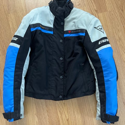 Italialaisen Dainesen naisten ajotakki mallia Hydra Flux Lady, väri black/fuchsia. Koko IT 48, joka mielestäni vastaa noin EU-kokoa 42.