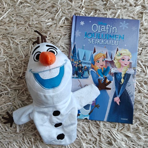 Avaamaton paketti Olaf käsinukke ja kirja Olafin Jouluinen seikkailu