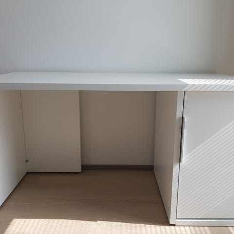 L-mallinen työpöytä äärimitat 120x160 cm, jaloissa korkeuden säätö. Pieniä käytön jälkiä, yleiskunto hyvä.