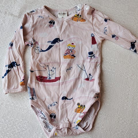 Moomin by Martinex -body, siisti käytetty kunto. Muumivaatteille tyypillistä "pesuhaitua".