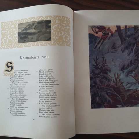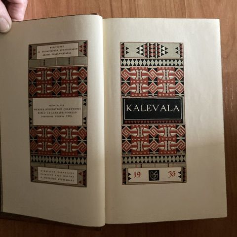 Werner Söderström Osakeyhtiö laakapainossaan Porvoossa v 1955. Kuvittanut ja painatustyön suunnitellut Akseli Gallen-Kallela. Sivuja 729.