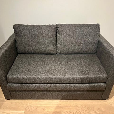 Sohvan saa avattua vuodesohvaksi, sisällä patja. Päälliset irrotettavat, pesty ennen myyntiä. Väriltään tummanruskeat. Ollut kissataloudessa ja hieman raapimisjälkeä löytyy. Muutenkin sohvalla on jo ikää joten kulumisen jälkeä on. Sohva sijaitsee Matinkylässä, tulemme kantoavuksi autolle mutta kuljetus omasta takaa. Myydään sohva muuton yhteydessä uuden alta pois.