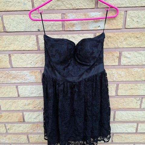 Niskalenkki mekko, laskeutuu kauniisti. Merkki joku made in china ja koko luokkaa L. Kerran pidetty.
