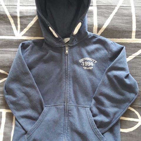 Sinivihreä huppari vetoketjulla ja vetoketjutaskuilla, hyvin siisti.