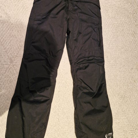 Hyväkuntoiset mustat kevyet ulkoiluhousut,jossa on korjattu pieni reikä sekä ommeltu heijastinpaikka.
