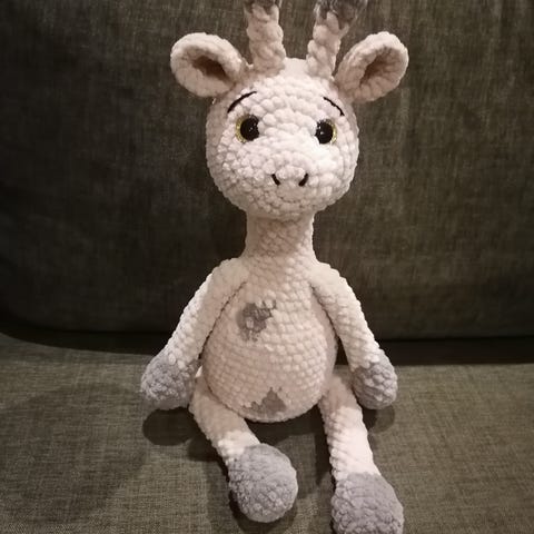 Käsin virkattu kirahvi.
